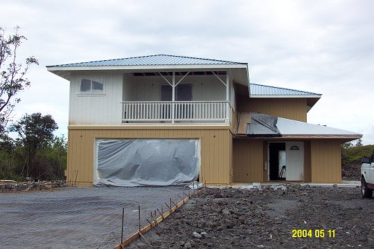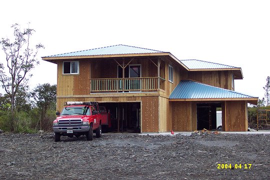 We've been lucky to have a string of dry days recently, so not only were they able to finish the priming, but they were able to begin the real painting as well. We're used to using stain on a house, but around here everyone says paint is the way to go. We've learned not to second guess our builder. Inside the house, work continues. The insulation was being installed on this date, and the delivery of sheetrock was expected the following day. We thought long and hard about insulating, but finally decided it was worth it for the sound insulation value and because it would reduce temperature fluctuations. On those frigid days during the seemingly endless Hawaiian winter, when the temperature plummets to the low 60's, it should be possible to heat the house by closing the windows and lighting a candle. |